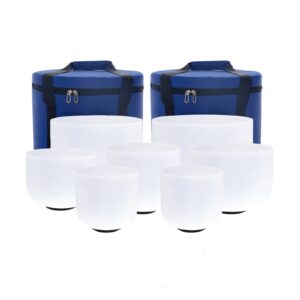 Hye-eun 7pcs 440hz/432hz Crystal Singing Bowl Chakra Set 6-12 Inch with Heavy Duty Carrying Case Medition Sound for Yoga Energy