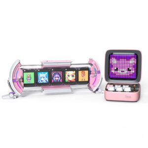 Ditoo Pink+Times Gate Pink – Cute Pixel Display Art Bluetooth Speaker and Gaming Digital Clock Desk Setup with APP Home Decor