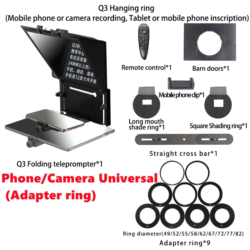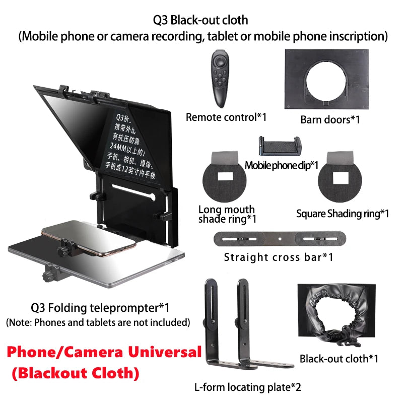 QIYE Q3 Foldable Teleprompter for 12 Tablet Phones iPad Prompting Phones Camera Shooting Tablet Prompter