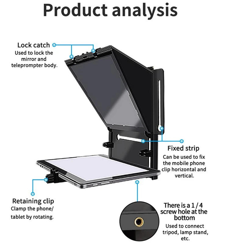 1. Foldable teleprompter, convenient for storage and carrying.