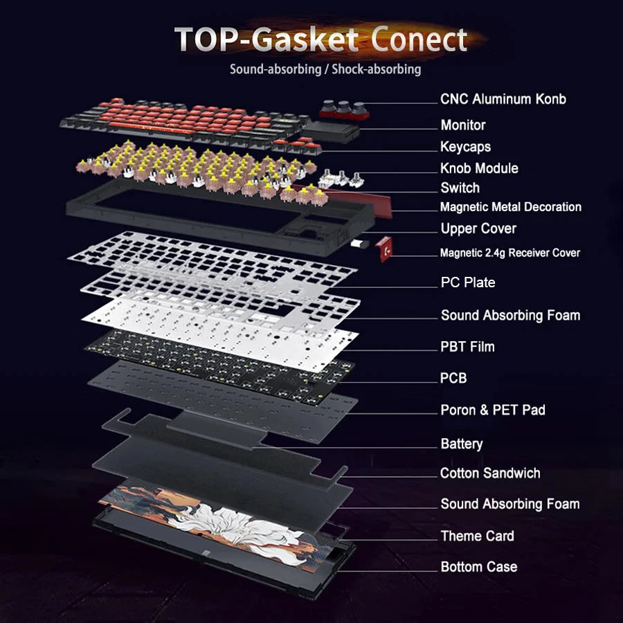 switch, similar to the traditional brown switch, Rose Pink and Rose Silver are linear switches, similar to the traditional red switch, if you like pressure For smaller switches, it is recommended to choose Rose pink. These three switches activate quickly and respond quickly, making this one of the best gaming keyboards around. There is a hot-swappable socket installed on the PCB, which is compatible with almost all 3-pin and 5-pin MX type mechanical switches on the market. The screen and rotary switch also support hot swapping.